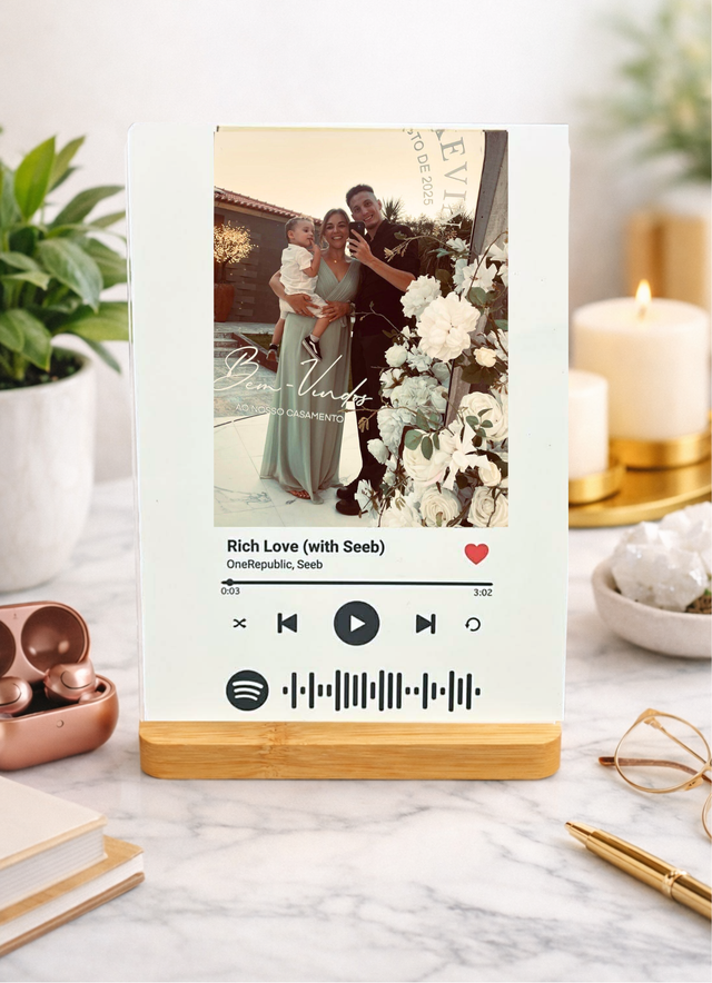 Transformez vos souvenirs en musique avec notre cadre Spotify personnalisé. Ajoutez votre photo préférée, le titre de votre chanson coup de cœur, le nom de l’artiste… et créez un objet unique chargé d’émotion.